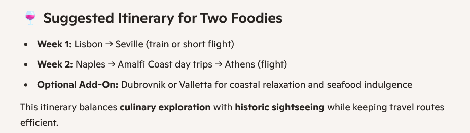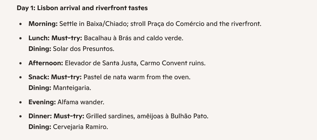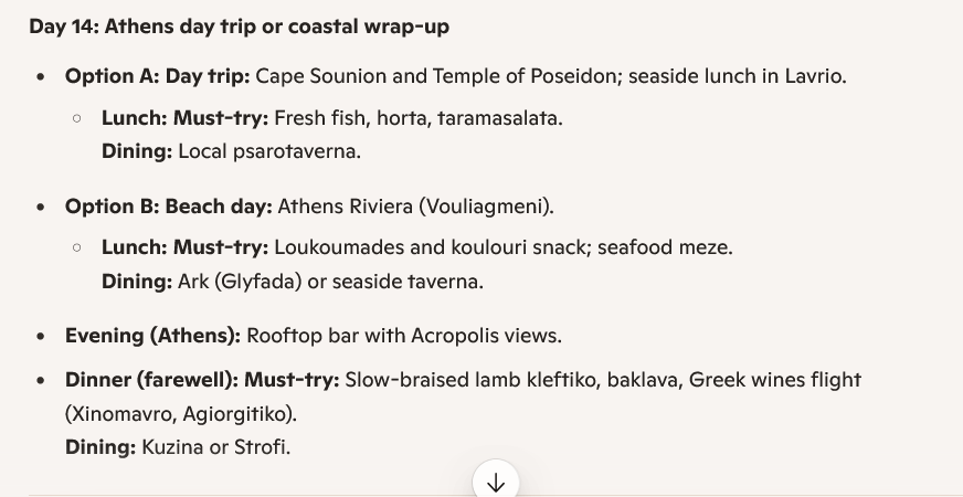 Once you’ve decided where you want to visit, you can use AI to draw up a personalized travel itinerary for you. Like step one, being specific is also key here since it’ll generate a more detailed travel plan for you.